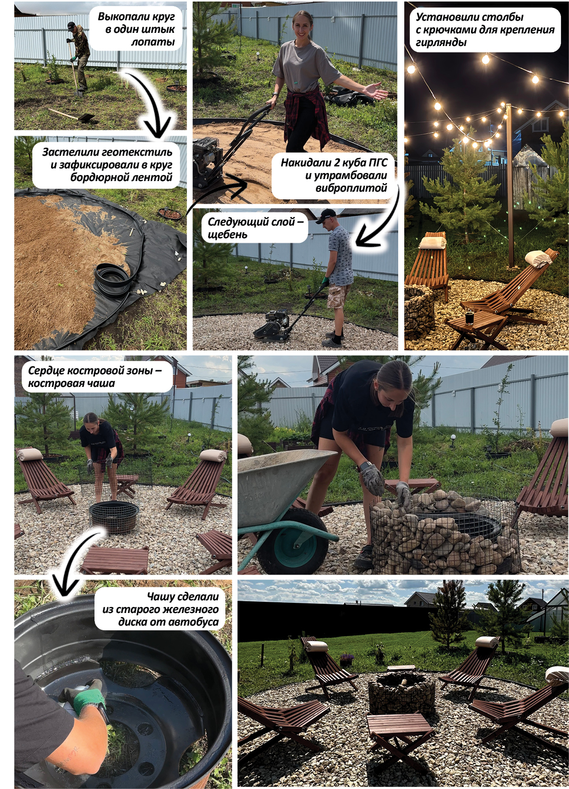 Идея о создании костровой зоны своими руками пришла ровно в тот момент, когда я увидела у друзей набор кресел релакс со столиком. Мы с мужем с нетерпением ждали начало летнего сезона, чтобы создать это прекрасное место.